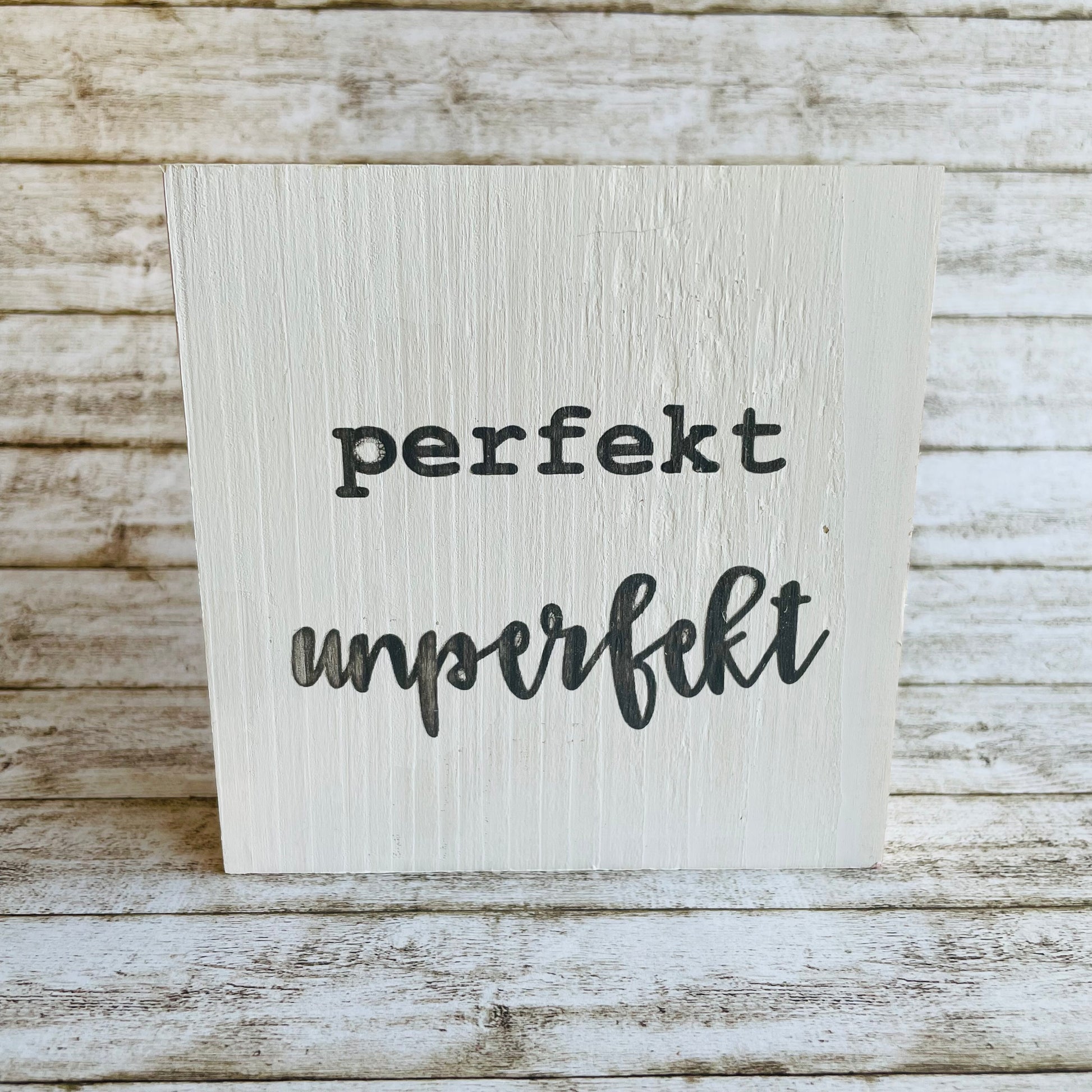 Ich bin sehr gerne perfekt unperfekt und zeige es meinen Mitmenschen mit diesem Motto-Aufsteller. Und wie bei allen meinen Unikaten ist es hier eben auch- jeder Druck ist Handarbeit und nie ganz perfekt- sondern perfekt unperfekt! Die Botschaft findet eigentlich überall einen guten Platz, wo man hinschaut- neben dem Spiegel, auf dem Schreibtisch oder auf der Fensterbank.