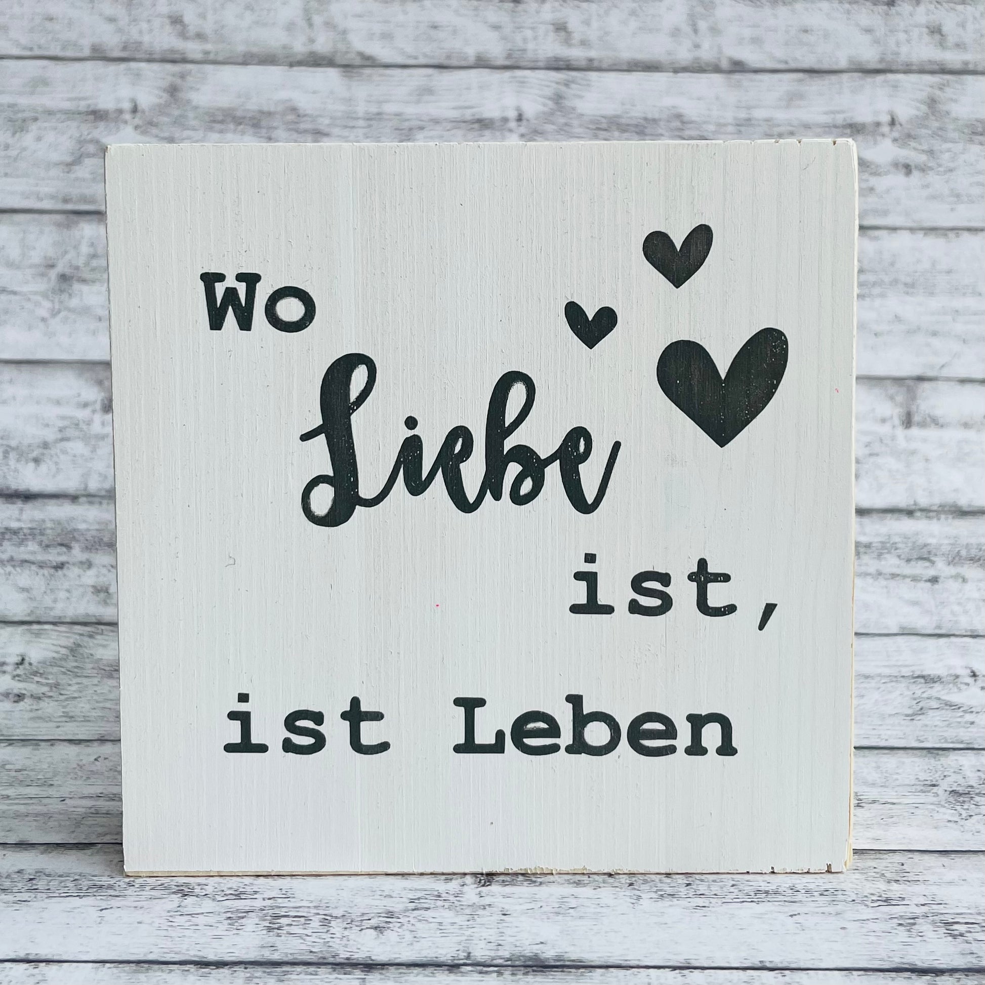 Handbedruckter Holzblock (Massivholz), ca. 12x12x2,7cm, Vorderseite weiß und mit Siebdruck in grau, feucht abwaschbar.