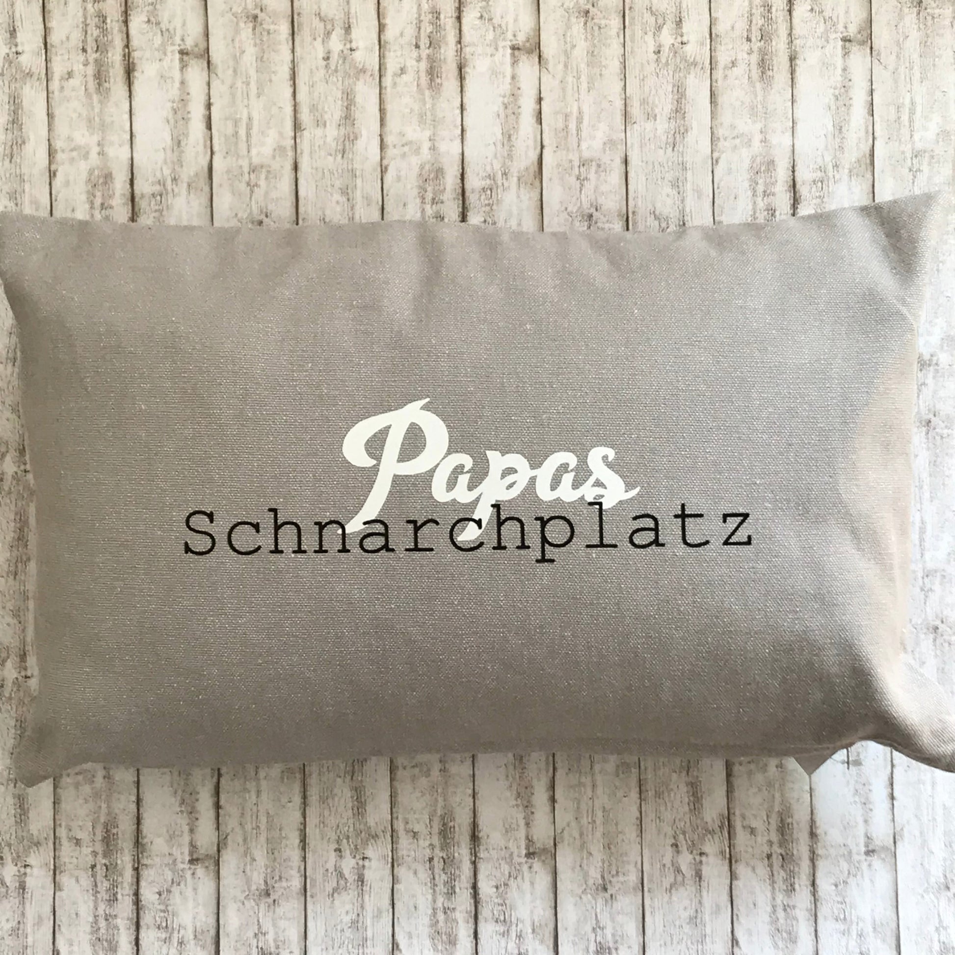 Sonderanfertigung Kissen "Papas Schnarchplatz" - hier wurde ein individueller Wunsch auf einen eigenen Kissenbezug umgesetzt- melde dich gerne über das Kontaktformular, wenn du ebenfalls einen Wunsch hast.